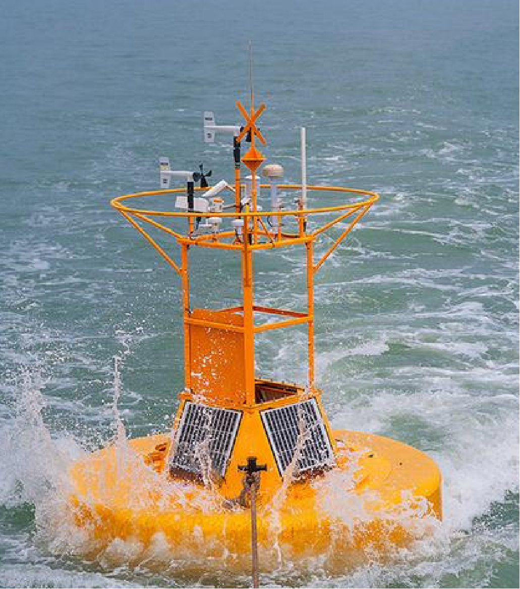 据悉,该观测网络建设包括24套3米水质综合浮标及3套6米通量水质综合浮标。这些浮标作为关键的“多功能海上观测基站”,其顶部集成的风速风向传感器,持续监测并采集海面关键气象参数。